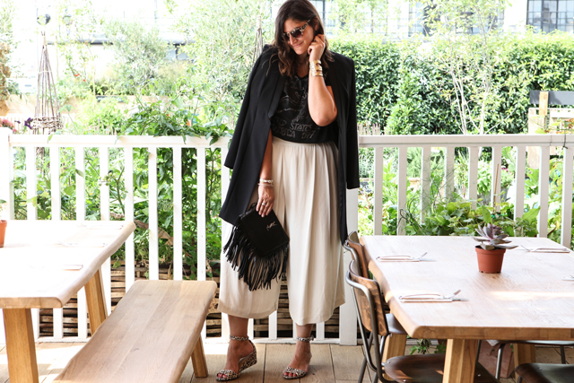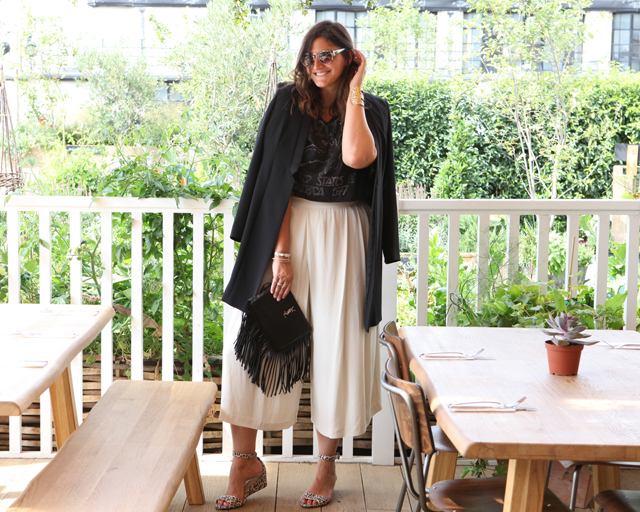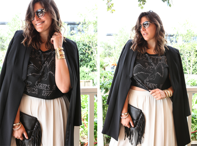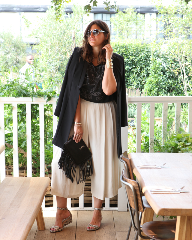 Led Zeppelin T-shirt, Eileen Fisher Culottes, Marina Rinaldi Tuxedo Jacket, J Crew Shoes,