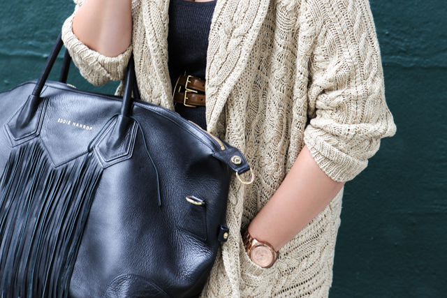 Ralph Lauren cardigan (purchased at TK Maxx), Pringle Dress, UGG Trainers, Eddie Harrop Bag