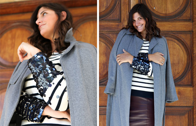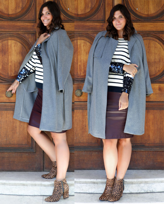 Look One: Striped Sequin Jumper, Slim Fit Faux Leather Skirt