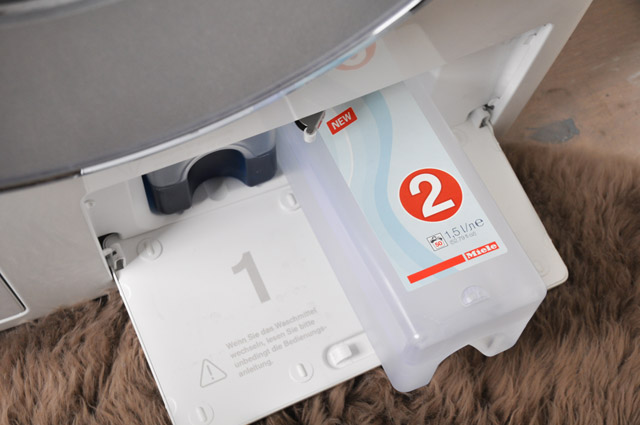 This is probably what I was most impressed with when it came to the Miele W1. You never ever need to use detergent again. The machine comes with a system called Twindos. This is basically a detergent system that is built into the machine that automatically dispenses the correct amount of detergent, according to the programme you have specified. You cannot get this wrong. And you don’t need to worry about keeping massive boxes or bottles of detergent anywhere. You simply insert two cylinders of liquid, the Twindos, into the machine every blue moon and you’re ready to go. There’s nothing more to think of for normal laundry.