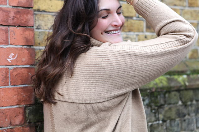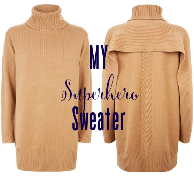 I’ll go ahead and tell you I’ve always had an obsession with capes. Not the usual fashion capes, I’m talking superhero capes here, the ones Superman and Batman sported. Only, I’m a grown woman and superhero capes aren’t really acceptable in the real world these days. So, when I find a cape that is more or less a superhero in the fashion world, you bet your bottom dollar it’s going to enter my closet. I am positively obsessed with this cape-back long sweater from Jaeger. It’s the perfect length, the most luxurious fabric and an ideal “fashion-superhero-in-hiding” ensemble. Need I say more?