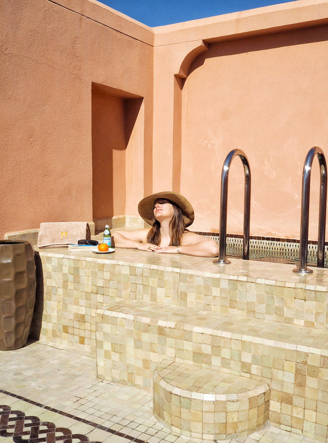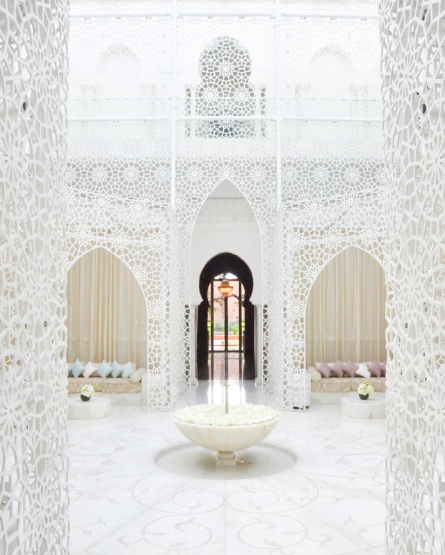 As I mentioned, I’d be a fool to think that my writing could ever truly articulate the overwhelming level of hospitality or the divine designer details present at The Royal Mansour. And so, I’ll let my camera take over from here. In total, I took 2,145 pictures while in residence, capturing everything from the ornate bed to the rooftop terrace, complete with pool. I actually found myself taking pictures of everything from the door decorations to the perfectly pleated and drawn curtains in every room. There isn’t a square inch of any space at The Royal Mansour that hasn’t been carefully planned, decorated or manicured in a way that will reflect the best of what this country has to offer. It is, I warn you now, at times almost too much. You will find your eyes darting around you at every moment. Conversations in new locations are almost impossible as you find your gaze drifting around the rooms in awe of what Moroccan artists are capable of creating. Again, I’m trying to describe the magnificence, when it’s impossible to do so. Pictures, let’s move to pictures. This is The Royal Mansour of Marrakesh.