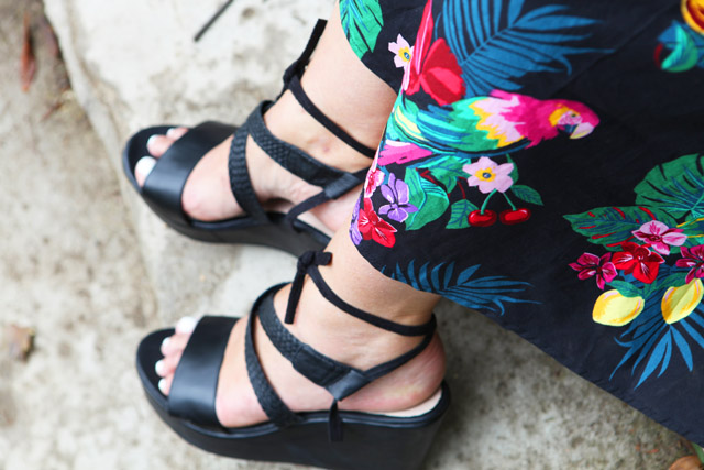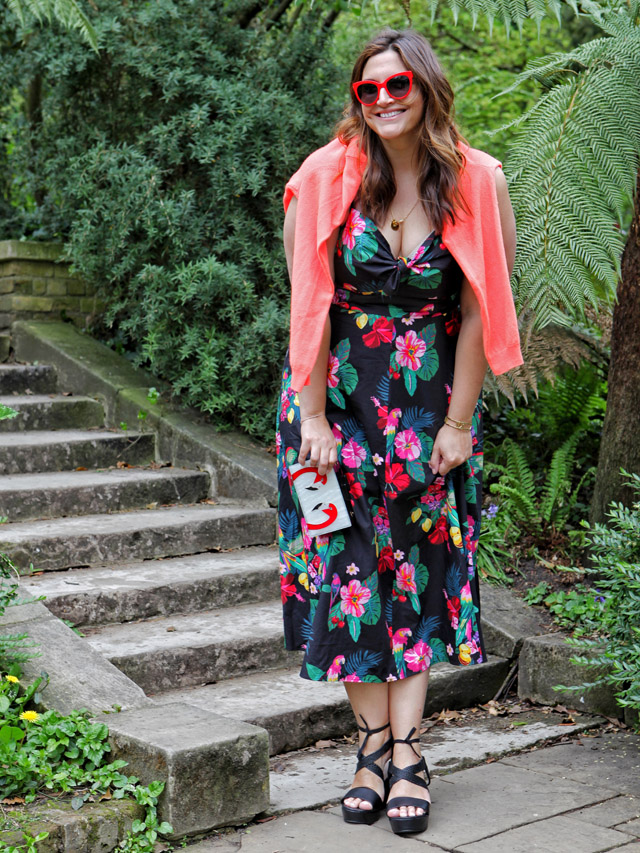 Another day, another dress. I warned you at the beginning of the season that I had gone dress mad and I hope I’m showing sufficient proof that I never tell a lie to you, dear reader. The madness continues today with the addition of a parrot to my wardrobe. I say that because said dress was actually discovered because a parrot was calling to me from the middle of a rack. It’s all I could see as this tropical print dress called to me from across the store. Upon closer inspection it was the perfect cut, the perfect length and, well, it was something I wasn’t going to walk away without. I really do need to start practicing more self restraint. This particular habit of buying every time I “fall in love” is becoming very dangerous indeed. Good thing most of the dresses in question are coming in at under £100, but still…