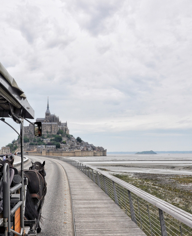 Now, about day three. This one’s a special one for me, in particular. When I was twelve, I saw a picture of Mont-Saint Michel in a book and vowed one day I would stand before it in the flesh. You know, those crazy declarations we make as pre-teens. I’m pretty sure I made thousands. But, being able to remember one so vividly and then to see it come to fruition is something very special indeed. Everything about this day had to be perfect for me. However, the true magic in a location is proven when absolutely nothing goes to plan and it’s just as magical as you imagined it would be regardless. We arrived and the parking was challenging as we hadn’t anticipated that we would arrive on marathon day. Yes, Mont-Saint Michel has a marathon. Then, the clouds came in and threatened serious rain. Follow that with me wanting to be super romantic and take a horse drawn carriage into the town, that took half an hour longer than taking the free shuttlebus, and you have a woman on the edge of frustration.