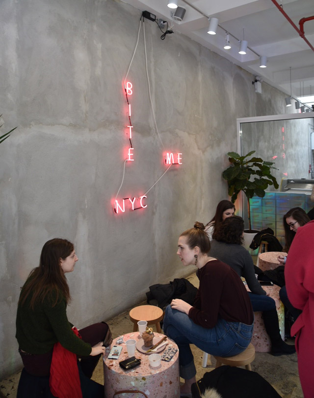 I’ll be really honest here and tell you that we simply popped into Supermoon Bakehouse, but didn’t order anything. At this point we had eaten so much it seemed as if we were already on a sugar high that would last the rest of the evening. Supermoon’s chic marble countertop, which is always perfectly organised with bits like Peanut Butter and Jelly Doughnuts and Ferrero Rocher Croissants, is almost too perfect for my liking. Everything is ultra organised and feels almost clinical. Even the futuristic takeaway boxes are out of this world. But, I have it on good authority that they deliver on taste, so I’m recommending this for anyone that’s dying to try something different next time they are in NYC.
