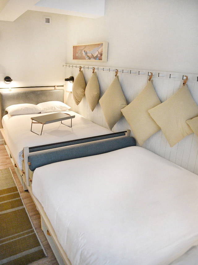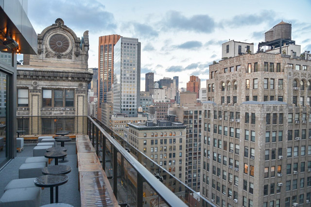 Let’s start with where we stayed, as this choice was definitely part of our foodie conquering plan. The Moxy Times Square has only just recently opened doors, but it’s already become a destination for people looking for a place to stay as well as those looking for hip new places to eat. They have five venues featuring the most elaborate food and drink combinations I’ve ever seen in New York City, which we’ll touch on below in our foodie guide. It must be mentioned that this is one of the nicer hotels I’ve stayed in New York, as it didn’t leave me with a gapping hole in my wallet. These are rooms that are affordable, funky, fun and ideally located for anyone visiting the city that wants to be in the thick of it. It has an urban and chic attitude, with a focus on making guests feel high end without making them feel bankrupt. They’d rather you save your money for one of the most outrageous cocktails of your life up on the rooftop. Let me just say this…they have a sharable cocktail that comes in a giant disco ball. Is there anything else you could want in life? They also have rooms that are perfect for people sharing. Their double double is my personal favourite. And if you’re visiting with kids, they’ll adore the bunkbed rooms. Basically, I’m throwing this on your radar as it’s a hotel worth having in your little black book for any future New York visit. Be warned that this is not your high-end luxury hotel. This is hipster town. Moxy is for the young at heart. But, having stayed at some of New York’s finest hotels, I can say I was absolutely comfortable here and would definitely stay again. Here are a few pics from our stay: