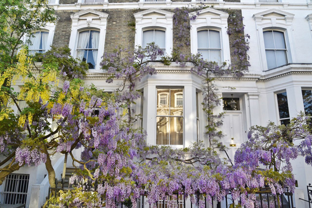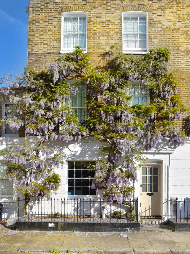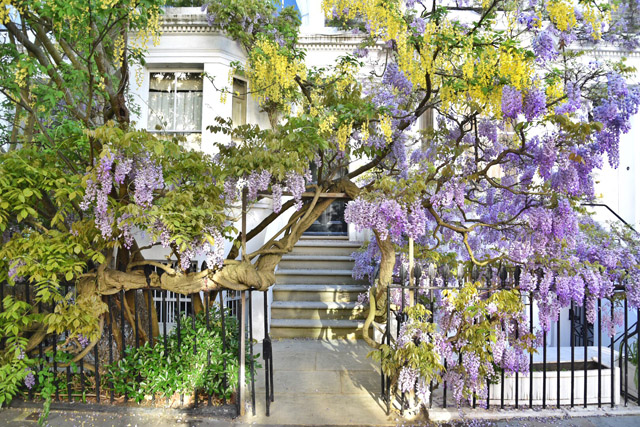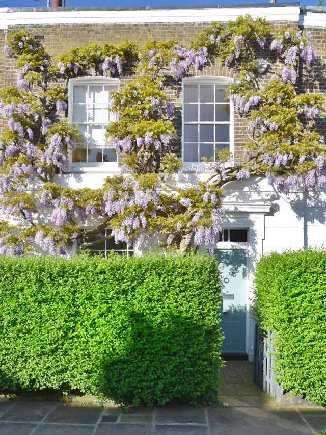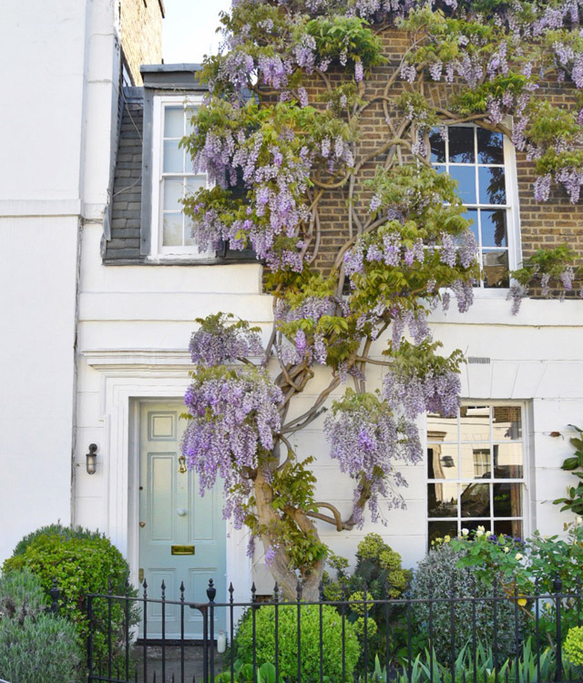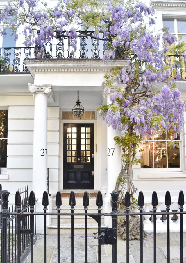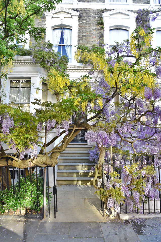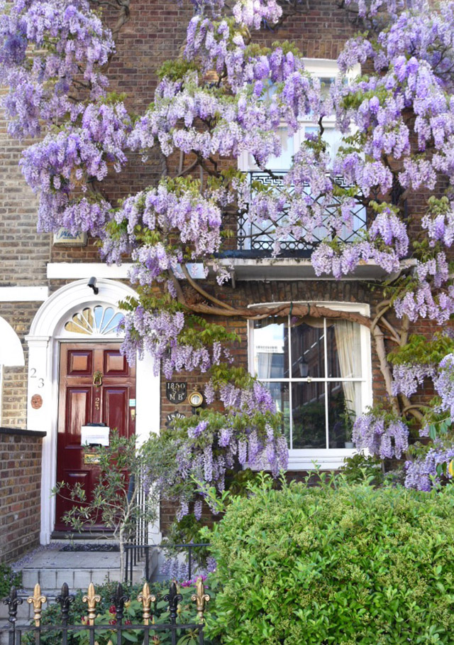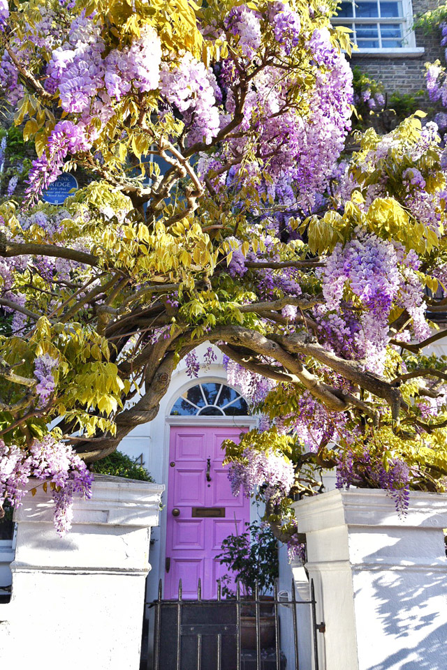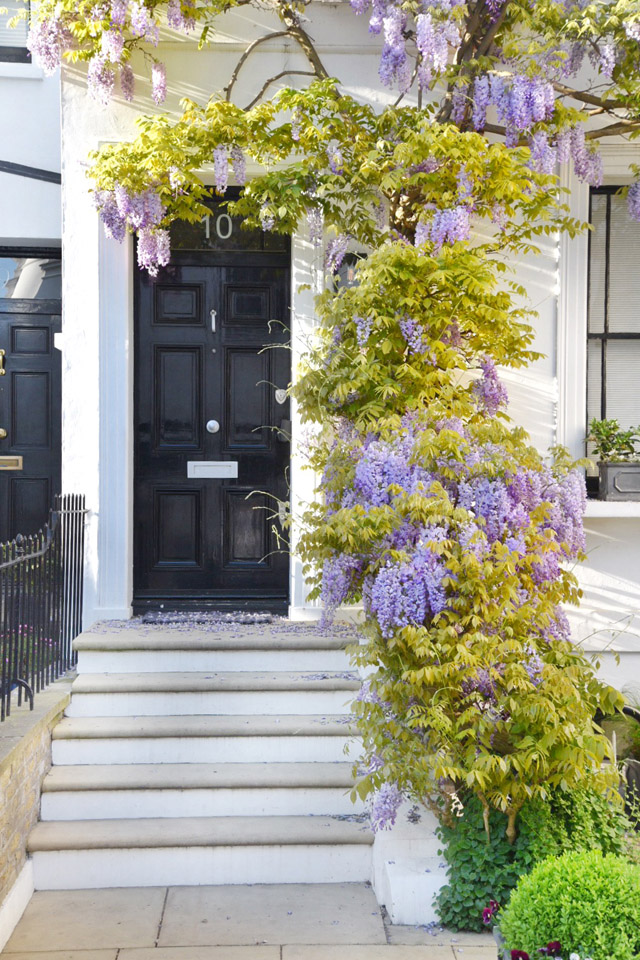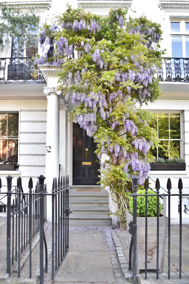 London’s Wisteria Hysteria is in full swing for the first bloom of the season. The city has turned purple and we’re seeing a record number of tourists pour in to watch the blossoms come to life. For me, in West London, the wisteria has been a part of my spring fling now for over a decade. It’s the moment you know spring has finally arrived and it is truly a sight to behold, in sunshine and in shade. But, it’s only through the constant sharing on social media that London has recently been given an official season of Wisteria Hysteria. The number one question I’m asked, as we approach the end of April and the start of May is… “where can I see the best wisteria?” So, I thought it high time to put together a guide. Rather than sending you from one end of the city to the other, I decided to concentrate on the area I know like the back of my hand – West London. This is just a smattering of the beautiful houses that feature blooming wisteria in London at the moment. And I think you’ll find, on the walking tour I’m about to lay out, that you will discover many more wisteria wonders for yourself. I’ve included pictures of every stop along the way that are doorways, mews and roads that have always captured my heart in the springtime. But, I hope you’ll travel off my set pathway and discover new blooms as they pop up around the city. Spring has officially sprung in London and it’s blooming marvellous. Sorry, I couldn’t help myself.