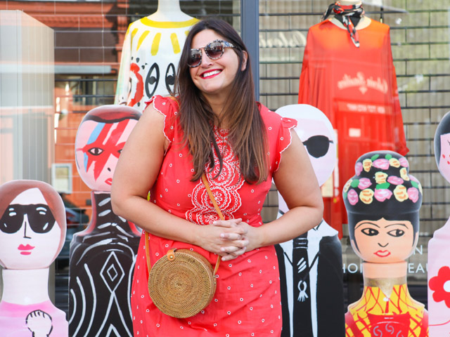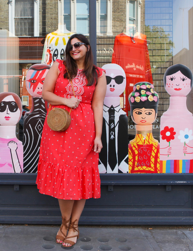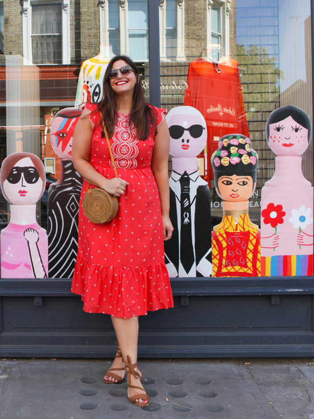 If you guys follow me on Instagram, you will have seen that I tried laser on my face earlier this week to get rid of years of redness that has developed on my cheeks from rosacea. There’s a whole story there and I’m waiting to share and here’s why…. there was some unexpected swelling. I looked like I’d had my wisdom teeth taken out all week. It wasn’t my best look, but I can already see it was worth the “Alvin and The Chipmunks” jokes. The thing is, life goes on. Sadly I’m not one of these ladies who can go into hiding for a week and not keep working. Not to mention the fact that would drive me crazy! So out I went, swollen cheeks and all. My only plan was to distract! I went bright and bold with the dress (which I adore) and covered as much as I could with sunglasses. Ha! Anywho, there’s a tale behind every ensemble and that’s this one. Next time I wear it, I’ll be back to normal and accessorising to boot.