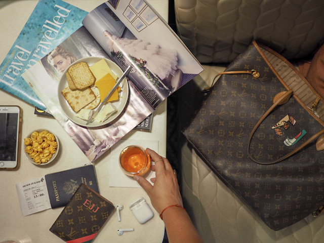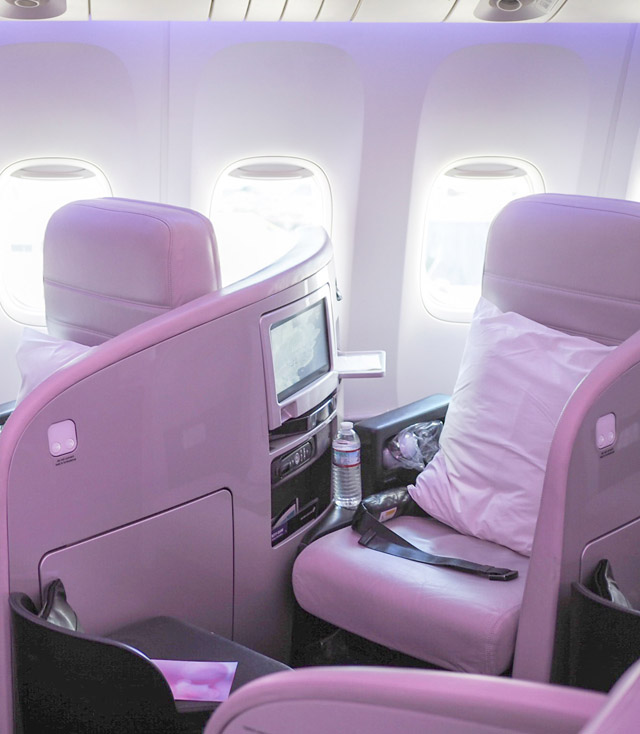 Now, it must be said that the lounge experience in itself is enough to relax any passenger before boarding. In fact, you wouldn’t be far off from thinking you actually already are on board. In the Heathrow lounge, they have these amazing little pods where you can escape to get any work done before flying. Work was the farthest thing from my mind, but I was very grateful to find sockets to plug in and charge my electrical devices. I then made my way over to check out the offering for food. The lounge was transitioning from afternoon tea to dinner and I was told I could indulge in both. There was wine, cheese, candy jars, a full bar and cookies galore. I mean one could spend all day here eating and easily leave a stone or two heavier. I had to keep my appetite in check. After all, I was headed to the land of Baywatch bikinis. So, I opted for a cheese plate, some caramel corn and rose. Come on, did you really think I’m that bothered by the bikini thought? You know me better than that. But wait for it… let’s get to the on board experience.