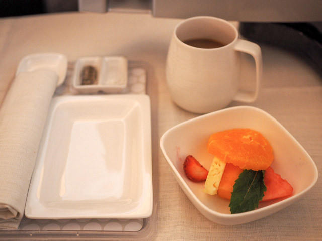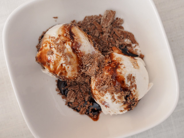 Yes, dessert was an ice cream sundae complete with chocolate sauce and Cadbury’s chocolate flake. To say I was glad I stayed awake would be an understatement. I’m pretty sure I did a little dance in my seat with every course that arrived and I’m convinced the flight attendants thought I was some sort of food critic the way I was photographing, dissecting and taking notes on each and every plate.
