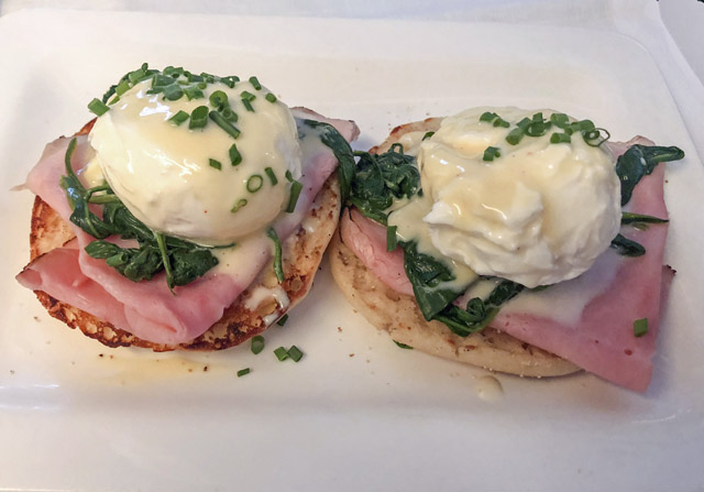 Now, before we wrap this up, I did want to share one more epic accomplishment with the in-flight dining with Air New Zealand. On my flight back to London, I was once again in the lap of luxury and slept nearly the whole flight back. In fact, I missed dinner! How on earth…. Anywho, I was awake for breakfast and I ordered Eggs Benedict. Can you think of something more difficult to request? And the eggs….they were cooked to perfection. Check this out….