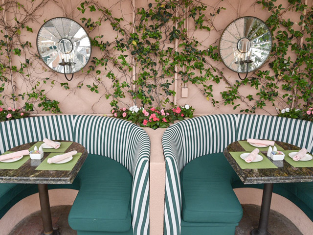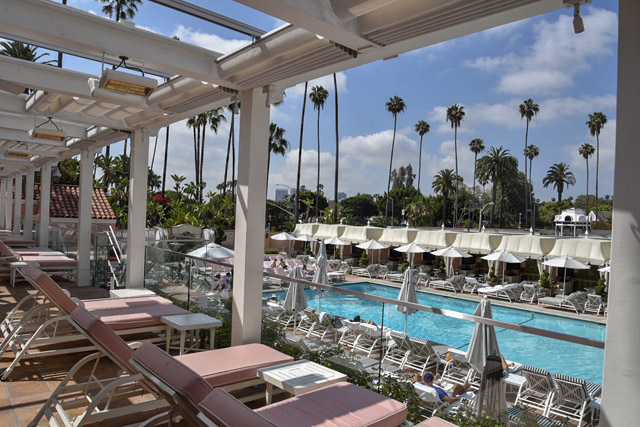 After The Polo Lounge, we made our way down to the pool area. You’ve seen the famous Beverly Hills pool cabanas everywhere, I’m sure. The poolside restaurant is just as iconic with it’s green and white striped booths and botanical surroundings. On a sunny day, this is the place to relax and, of course, people watch like mad. Alright, I’m starting to sound like you only check in to check out the Oscar winners. In reality, everyone here blends together. It’s almost as if being a guest of the hotel flattens the hierarchy. You’re all at The Beverly Hills and that says enough.