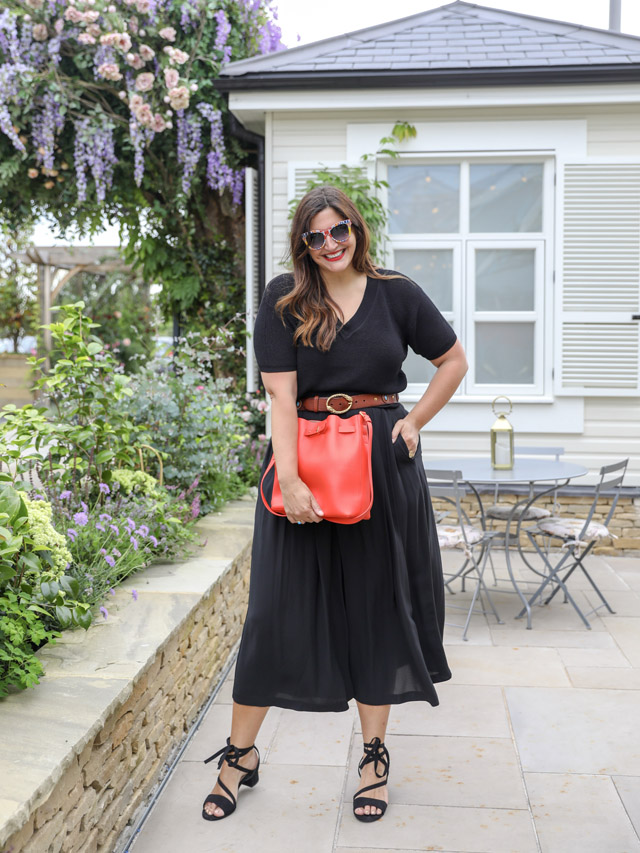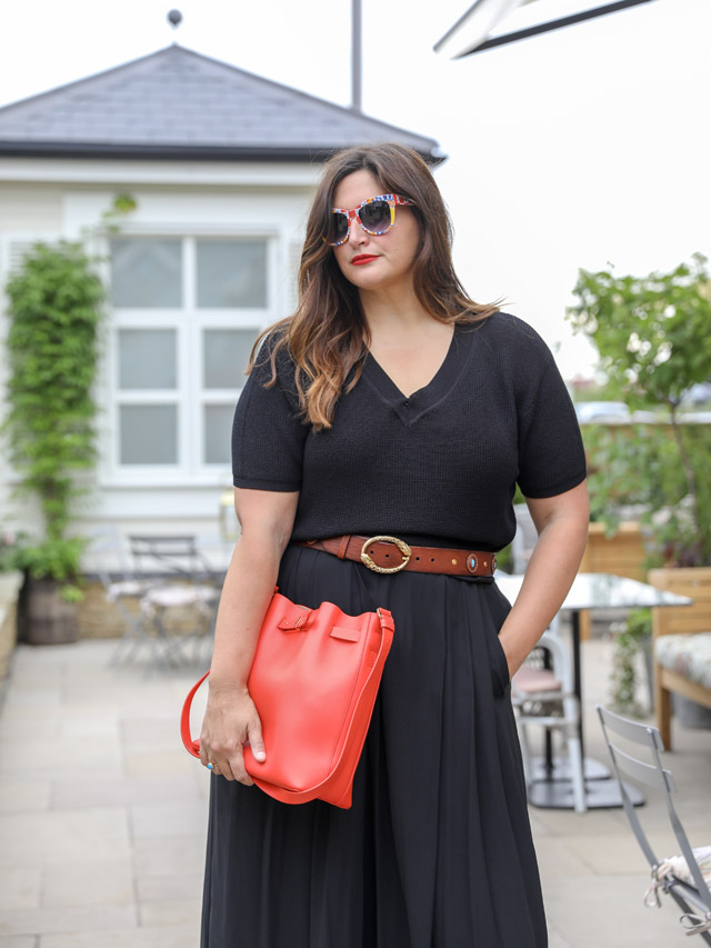 When was the last time you saw me in all black? Next to never! But I know this is a look that a lot of women swear by. Personally, I can’t be in all black for any length of time. I find it sad. So if I have to be, I’m going to throw in colour with the accessories. This beautiful bag spices things up while the brown belt helps to make the whole look appear that little bit more casual. It’s a winning combo if I ever saw one!