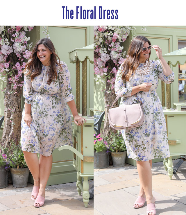 Let’s start with the floral dress. While the dress itself is a statement piece, I decided to go big or go home and paired it with three statement accessories that can hold their own.