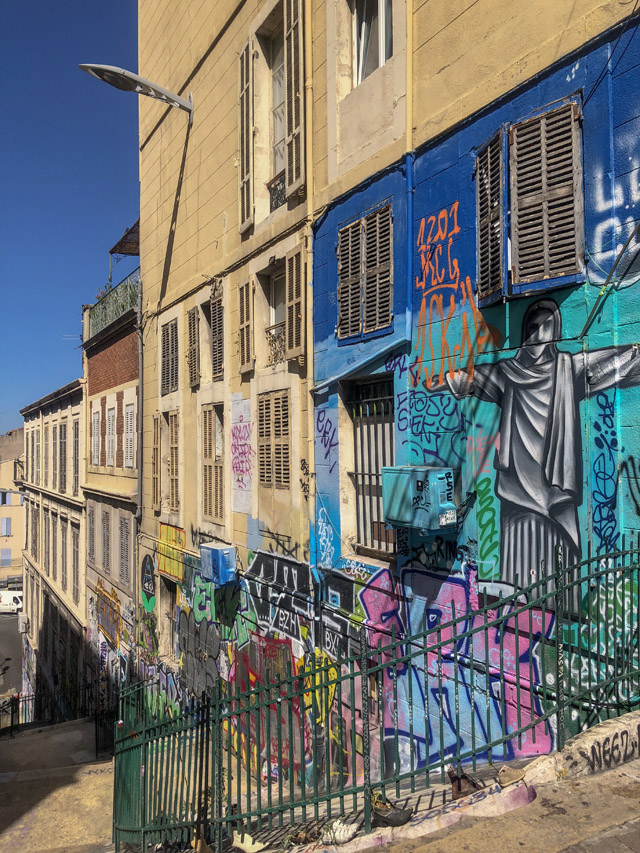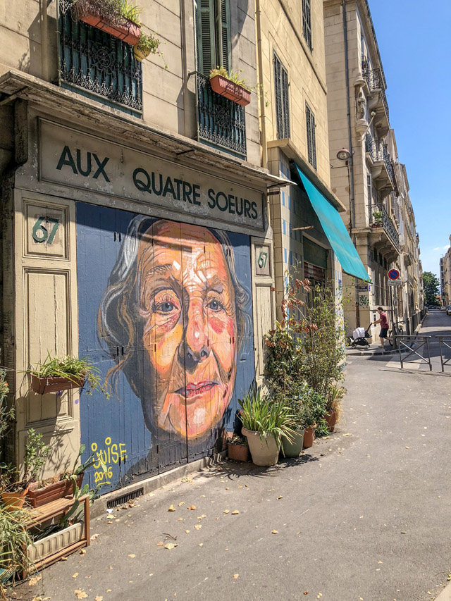 Sure, this is a no brainer but you’d be surprised how often people are looking down at their phones or maps, or whatever you might have in hand. Look around you, for heaven’s sake! Marseille’s beauty is found in the details. It’s found in the magnificent awnings, the ageing buildings, the hidden away murals or the vintage street signs. But you’ll miss all of that if you aren’t paying attention. So maybe let someone else take the lead, or grab public transport and look around as you go. I can’t stress this enough. I would look at where we needed to go and find the straightest route and zig zag around it. There is a romance in the subtle ruins here and it’s there to be discovered and admired.