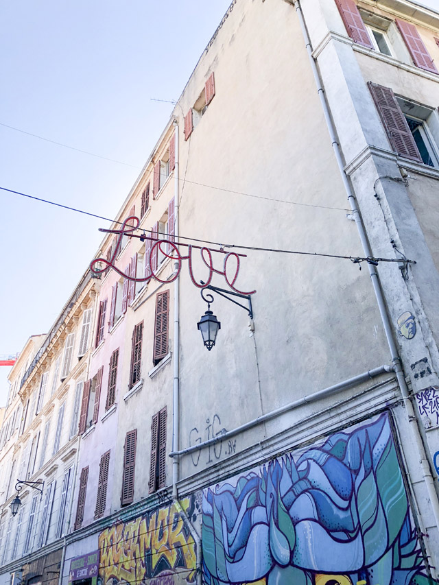 I’m going to start with Cours Julien as this was the biggest surprise for me, personally. Cours Julien is probably the “hippest” neighbourhood on the map in Marseille at the moment. The streets here are covered, from cobblestones to rooftops, in the most magnificent street art, and everyone’s in on the game. Restaurants, bars and shops are all decorated in graphics ranging from fruit to political statements. It’s as colourful as it gets in this city, it’s also probably as vibrant and as young as it gets. If you are a Londoner, I would liken this neighbourhood to Brick Lane/Shoreditch. For a great night out in Marseille, this is the place. Look no further.
