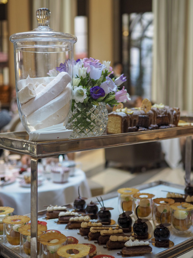 Now, about this tea. Yes, I’m sure you were waiting for me to eventually get there. Anyone familiar with the Corinthia hotel in London will know that this is one of most beautiful hotels in the city. The contemporary decor is simply sensational and the afternoon tea follows the theme with traditional British specialties updated with contemporary touches. Our tea begins with a glass of Laurent Perrier Rose. One could easily stop there and say no more. Starting an event with LP Rose is surely a sign you are in for a treat. The elegant champagne flutes are swiftly surrounded by monochromatic china, as our table is laid for the first course – finger sandwiches. If memory serves me correctly, we went through two servings of these sandwiches. They were sublime and the combinations of fillings were almost completely original to the Corinthia. Let’s be fair here and say a lot of London hotels have become increasingly lazy these days and only offer the bog standard fillings. After one or two afternoon teas, this can become very tiresome. So, Corinthia gets high marks for this. Before we could finish off our second plates of sandwiches, our table seemed to procreate. Out of nowhere, we were surrounded by smaller tables and tall tea stands. Boxes of scones arrived on the smaller tables in containers waiting to be unlocked, while the clotted cream and jam awaited their unveiling on the main table. Then the candy man came.