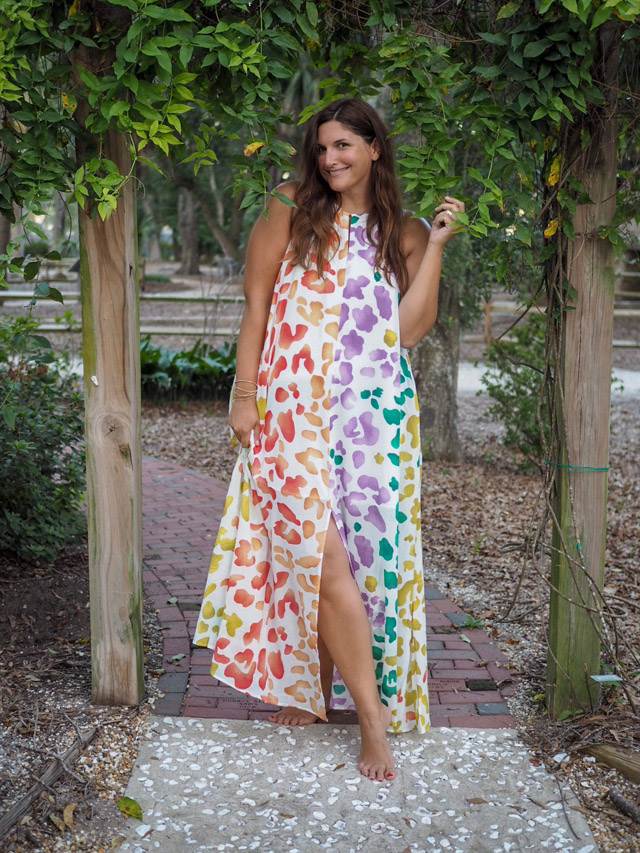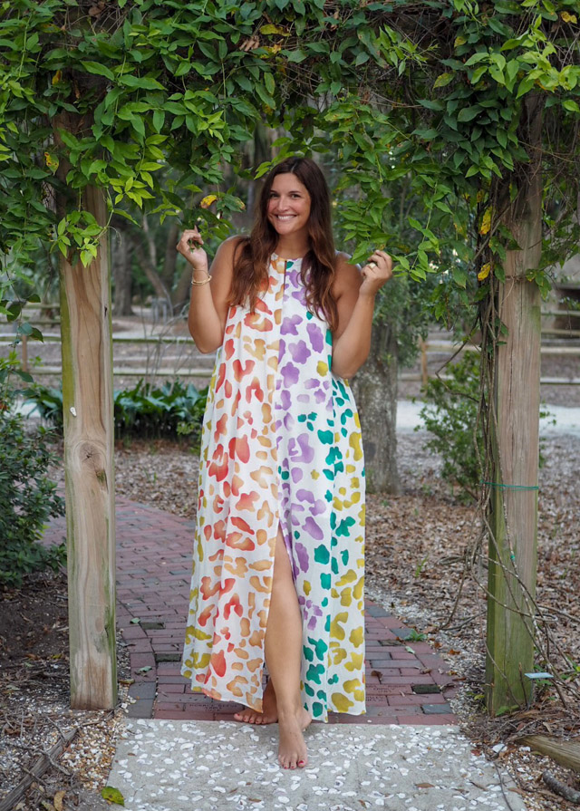 I’m not usually one for dramatics, but right now I’m going to be a little over the top. You need this dress in your life. I found it online the other day and had it overnighted, I was so excited. It’s under a hundred bucks and it is a serious show stopper. Now, the dress itself comes with a gold belt, which I felt was too dressed up for the party I needed the outfit for, but it’s a lovely accessory that does a great job accentuating the waist area. In a nutshell, this is my favourite discovery of the season and I’m keeping it short and sweet and just saying that you need to have this in your life!