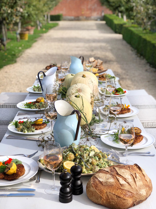 For our first day on the property, we were treated to a special lunch in the walled garden, prepared by my dear friend Anna Barnett. Pumpkins decorated our table as the area was bathed in sweet smelling smoke of the lunch to come. We wined, we dined, we strolled, we laughed, we cried, and ultimately we got lost in a paradise that seemed to exist in a parallel universe.