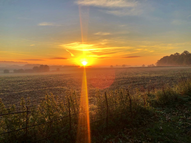 The morning of this year’s first frost, I was bundled up against the elements with knee high wellies on my feet, a heavy coat over my shoulders and a big wooly hat atop my head. I had ventured out to watch the sunrise over the rolling hills of Somerset and found myself paralysed in a moment of such natural beauty that, for the very first time, I felt a twinge of guilt in picking up my camera to capture it all. I wanted the moment to be mine. So, I sat and watched as strokes of pink and orange began to paint the mist on the ground and the clouds in the sky. It wasn’t until the sun finally peeked over the horizon that I let go of the idea that this moment was mine and mine alone. I picked up the camera and went to work, capturing the beauty of a sunrise at Babington House.