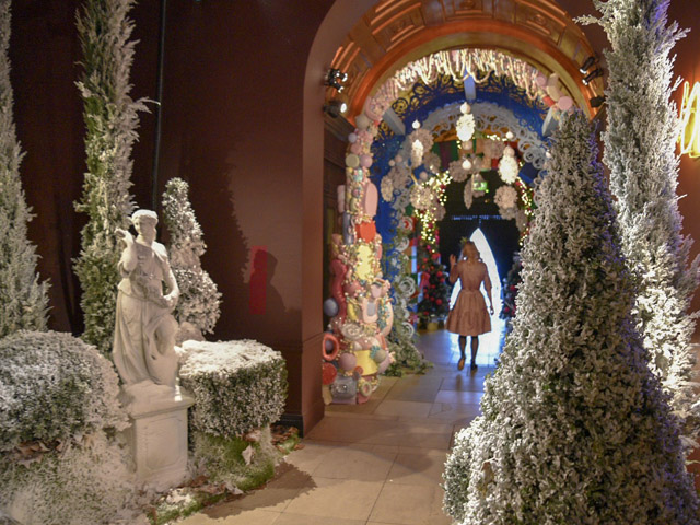 So I thought I’d give you a look at what you will find in Sketch London this year, with the idea, of course, that you go and see it yourself. Pictures only tell half the story – my half. There is so much to discover here, and I highly encourage you to. If you simply step in for a late afternoon coffee, it’s well worth it. However, an afternoon tea is always preferred. The pink gallery is still pink and filled with a different display of artwork. It’s really the only room that isn’t completely transformed for the season. Everything else has had a bit of a festive facelift. Alright, enough talking for me. Check out the Christmas decor…