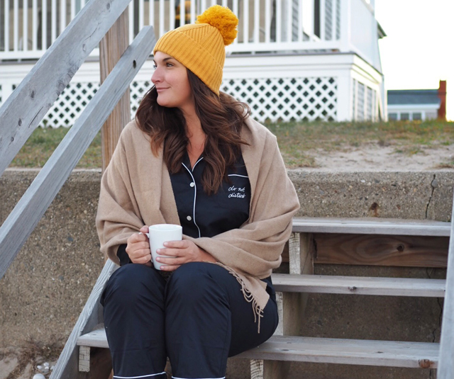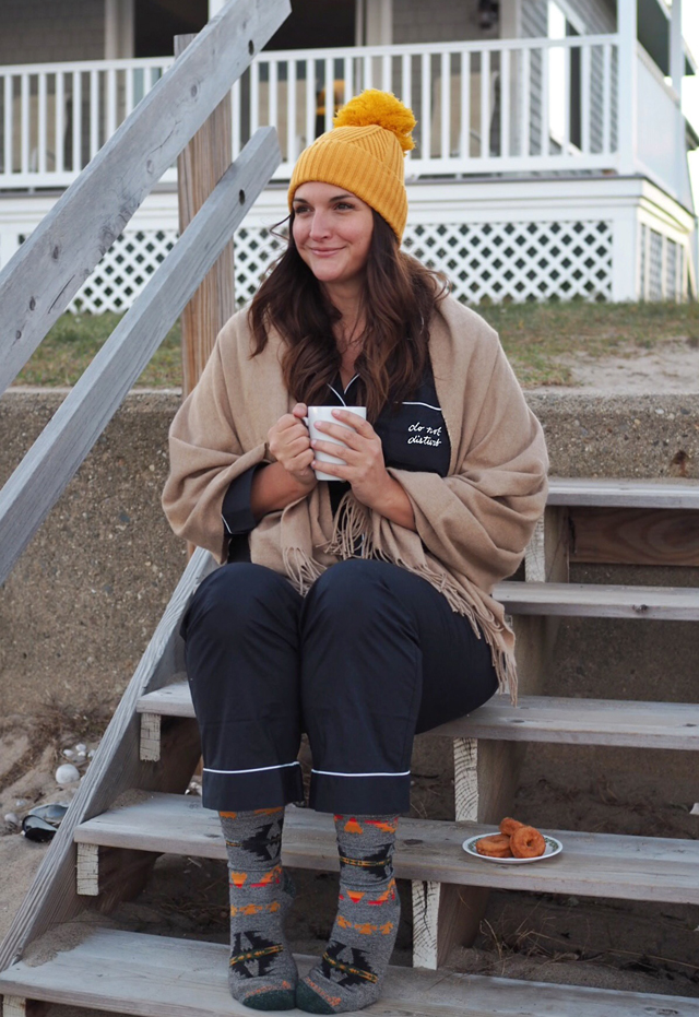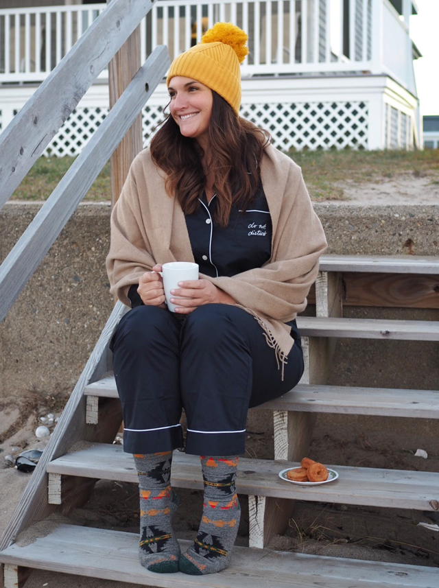 Over the past three of four years, I have become a collector of pajamas. Call me crazy, but I absolutely love the comfy cozy loungewear that allows me to crawl out of bed and straight onto the couch on a weekend morning. In this instance, however, I crawled out of bed and rolled onto the beach with a cup of coffee. You see, when I was little I remember my grandmother telling me that one should always wear pajamas to bed so that you aren’t running out of the house naked if there’s a fire or another emergency. Her reasoning may be been a bit extreme, but it’s stuck with me, as have the pajamas.