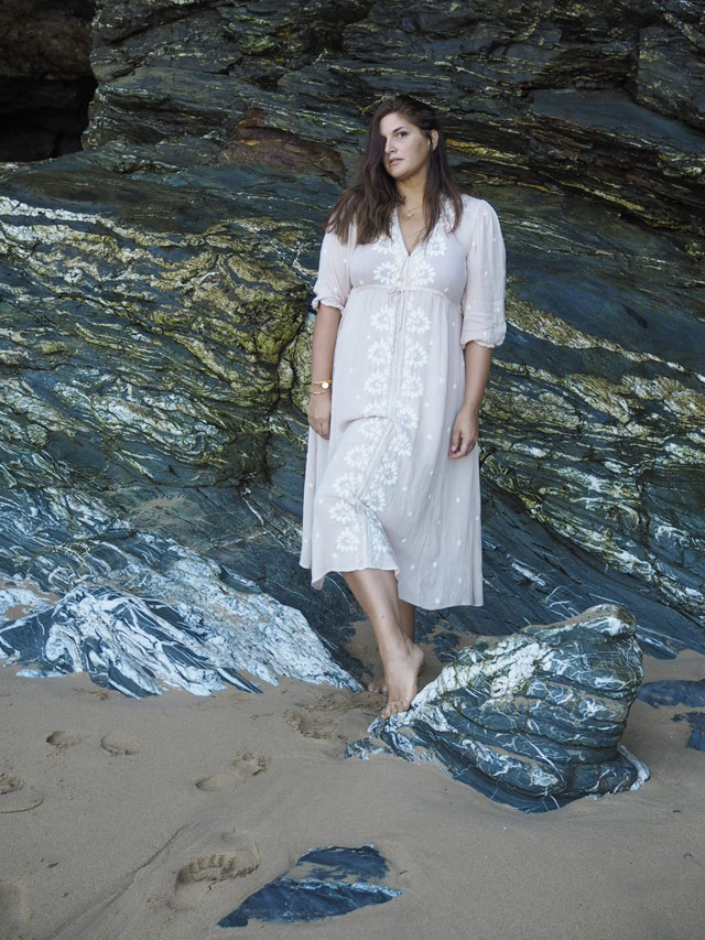On our last day in Cornwall, I made my way down to the beach to say my goodbyes, formally. I left my shoes in the hotel, smiled at the Indian Summer that had presented itself with a day warm enough for me to wear a dress and nothing else, and sat upon the rocky cliffs surrounding the shoreline. I found time to give thanks for being able to experience it all. I found time to close my eyes, lay back onto the cold stone and forget that I had anything other to do that day. I nearly forgot to take pictures of the dress I was wearing, if we’re actually going for the whole honesty thing here. But, as a good little fashion blogger, I set up the tripod and snapped away a few images so that I could share this beautiful dress, which now comes in ten different colour combos. You know a clothing brand has found they’re onto a good thing when…