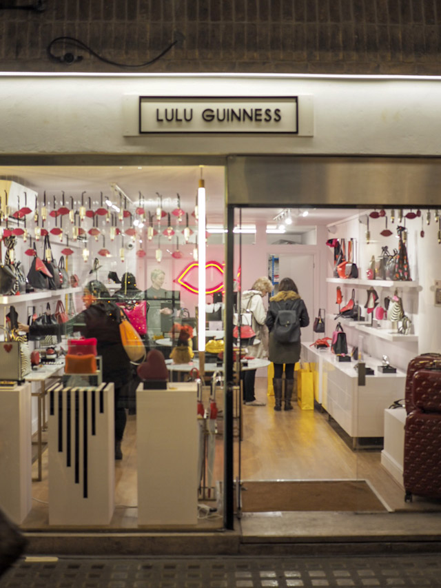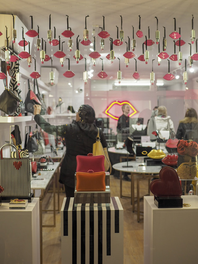 I am so pleased to be able to show you the brand new Lulu Guinness pop up in St. Christopher’s Place, London. Nestled into this beautiful corner of London’s most popular shopping area, the new Lulu Guinness is filled with absolutely everything you need to get the brand fix. From lipstick clutches to red lip carry-alls, I was swooning from the moment I stepped in the front door. The autumn winter collection is simply breathtaking.