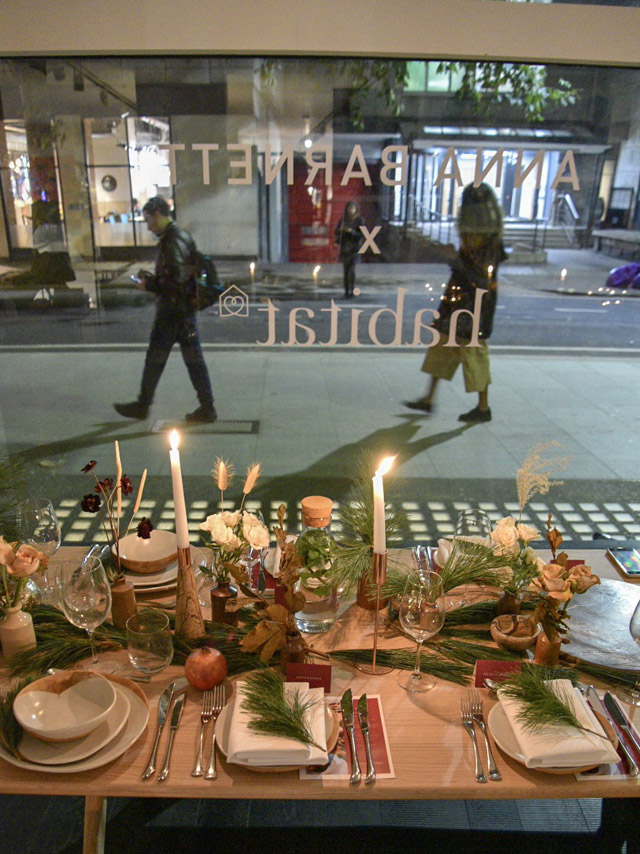 I must admit that when I first heard Anna was collaborating with Habitat, I couldn’t have imagined a better fit for a brand/ambassador line up. When I then got the invitation to a Christmas dinner in celebration of their work together, I nearly dropped the phone. Is it too much to say that’s three of my favourite things wrapped into one? Habitat invited a handful of journalists to dine in store, after hours, with a tablescape and meal curated by none other than Anna, in celebration of their work together. From cheese to cake, we dined like legends and laughed endlessly for a whole evening.