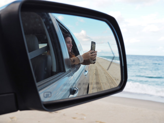 Driving out to the lighthouse on the beach.
