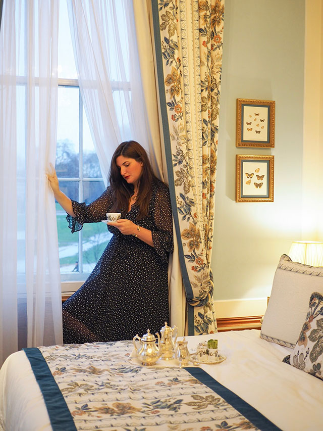 My suite at The Lanesborough was, well, it was magnificent. Hand painted wood panelled walls decorated the space from floor to ceiling. Televisions were hidden behind paintings, within sets of drawers and even within bathroom mirrors. This didn’t feel like entering a hotel room, this was like stepping into the sitting room of a wealthy Duke and Duchess. I felt myself looking around corners, wondering when the real owners of this space would come home and find me lurking in their bathroom, wearing their plush robes and preparing a bath using their heavenly scented salts. Alas, the only interruption I had that afternoon was my butler bringing in a tea service to calm me after my extensive travels. I didn’t have the heart to tell her I’d come from only two miles away. Bless her. I must have look exhausted. The American accent is also always misleading.