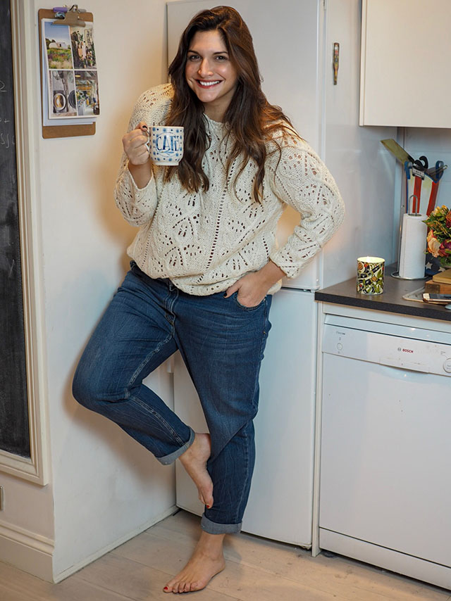 The Boyfriend jean is probably the chicest thing we’ve ever borrowed from the boys. The first girl to steal and wear her boyfriend’s actual jeans deserves a medal of honour, in my opinion. So lady, I salute you. This is my ultimate favourite style of denim. You can dress it up or dress it down. Dress it up with a sequin top, a tuxedo jacket and some epic heels. Dress it down for a day at home just as I have here, with a comfy sweater and no shoes at all.