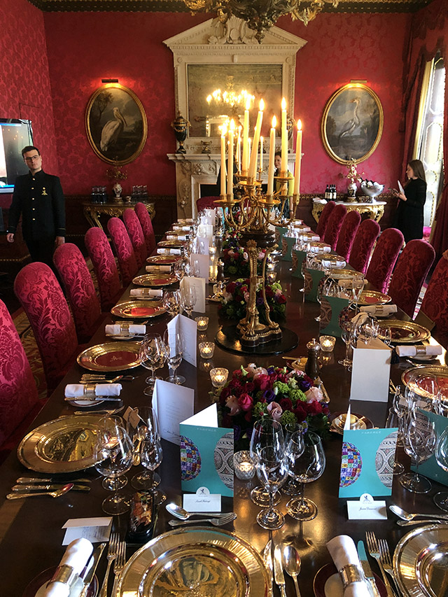As the clock struck 1pm, we sauntered into one of the rather famous Ritz London private dining rooms, this one having been given a special place in popular culture because of Anna Wintour’s meeting with Mario Testino in this very room in The September Issue. But today, not even Anna Wintour could trump this occasion. We sat before sterling silver chargers with bright blue Faberge menus as a member of the Faberge family welcomed us to this moment in time. Then came the video…