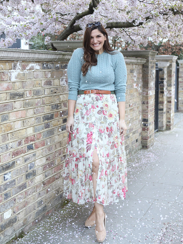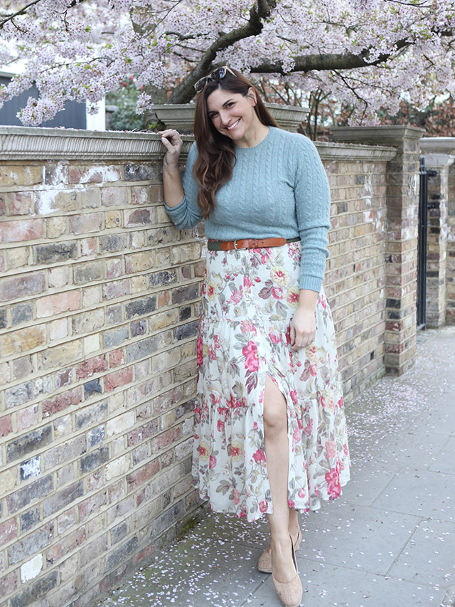 Of course now that the weather is heating up and the pastel colours are taking over every neighbourhood, my wardrobe is starting to change dramatically to match. I’m still embracing the knits, for now, but am also stepping out with a bit more of a floral direction in my coordinating separates. And this skirt, well, this skirt was a purchase made last week that could have been made thirty years ago. My mom used to have a skirt like this that she would wear with a denim shirt, boots and a wide brimmed hat I still dream about owning. It’s a skirt that is forever timeless, only I’m pretty sure I’ve fallen in and out of love with this exact style over a dozen times since I was a teenager. I make be fickle as hell when it comes to fashion but even I can’t argue that while we may have a love/hate relationship with certain classics, they always come back to haunt us!