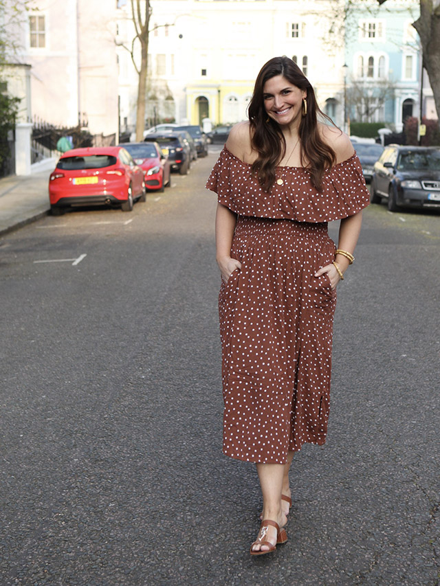 Either way, the dress you see herewith, the polka dot perfection, was a design I fell in love with before I even knew it had pockets. When I pulled it out of the bag and found it did have them, I was over the moon. I wore it the very same day it arrived. Sure, it was a little chilly. But, in the sun, I was comfortable and felt like I was winning at life in my fabulous pocketed frock. Doesn’t get much better, in my humble opinion. I’m celebrating the little victories in fashion these days and this is definitely one of them.