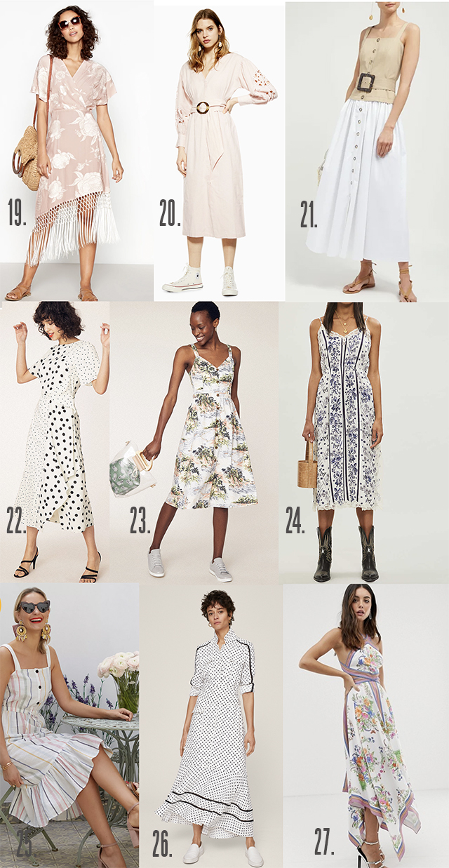 If you guys have been following FFG for a while now, you’ll know this is seasonal feature. Twice a year I spend a week scouring the internet to find dresses worthy of our attention for the season ahead. While autumn winter is always fun, spring summer is where the real treasures are discovered. This is the season where all you need is the dress (and maybe a nice pair of sandals) and out you go, into the big bad world, fashionably attired. From cold shoulders to tiered ruffles, bright yellows to pale neutrals, there is a dress here to suit every size, shape and skin tone. You have my word on that. So, here’s hoping you find a match or two. I’ll just go ahead and tell you I’ve found about a dozen matches thus far, just in making this list. I am the worst sort of dress flirt. What can I say? One just isn’t enough!