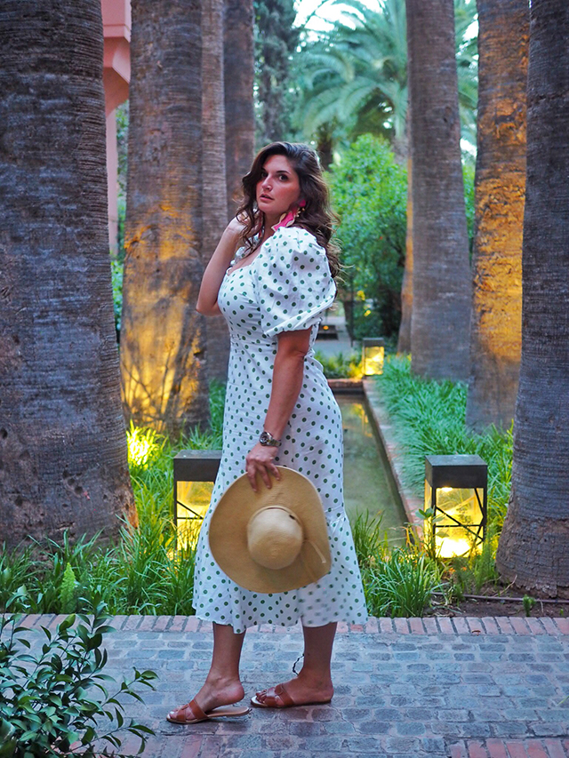 The dress was purchased, in actuality, weeks ago. I had kept it hanging in the closet, just waiting for the right time to bring it out into the open. London weather wasn’t cooperating, so when the trip to Marrakech came up, I knew it was time to dust it off and take it out for a spin. The purchasing paid off. I felt like a million bucks wearing this out and about. It fit like a glove, was light weight so perfect for warm weather, and accessorises like a dream. Grab this now. It will sell out, instantly. You’ve been warned!