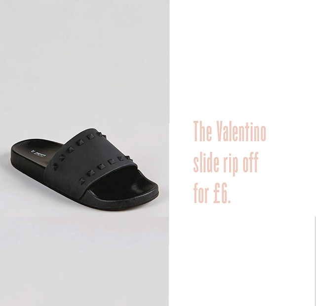 A new Sunday Shopping feature and this week I’m focusing on the high street. So that means everything you see here is on the “affordable” side of shopping. No need to eat PB&J for a week to purchase anything on this page. The solid favourite is the discovery of Valentino slide rip-offs for £6. Plus, there are more dresses than you can shake a stick at… or something like that. Enjoy and happy weekend!