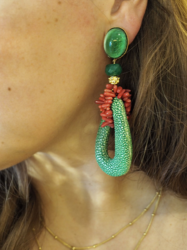 Before you head off down below, into the Aladdin’s cave of earring exhibitions, let me first tell you about the Parisian goddess that is Laurence Coste. For two decades now, Laurence has been decorating some of the most famous earlobes in London society. Her unique, and often times bespoke, designs are works of art. With two stores in London – on Walton Street and Sloane Street- Coste has quite the showcase of her work on display at all times. To visit either location is an experience in itself. The staff are perfect reflections of Laurence’s enthusiasm and love for the business as they are all too eager to recommend pieces you may be after for yourself or for gifts for loved ones. Whatever the occasion, when in store, get lost in the magic of trying on pair after pair, as you discover how each and every creation can completely change your look.
