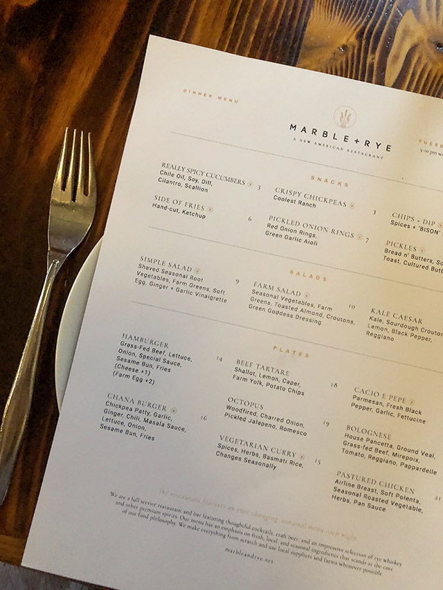 Ever wondered where the food in front of you has come from? Well at this restaurant, you can see a full list of the farms that provide for Marble + Rye, as well as each and every item that comes from the different farms from across the state. This restaurant may claim to keep things simple, but their dishes are anything but. The freshness is most definitely reflected in each and every course, with a real emphasis on taste over anything else. As you can see from the pictures, this restaurant could give a damn about the instagram. They aren’t worried at all about the lighting or the presentation, they just want to hear the gasps from the table as first bites are taken. And there were gasps a plenty. Delicious.