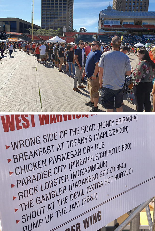 Since its founding, The National Buffalo Wing Festival has seen 5 million wings consumed, welcomed nearly 1 million people, had one wedding proposal and one wedding (can we make that two, please? I’m entirely down with the idea of marrying a Wing Prince with a Wing Ring). Nearly 200 restaurants from around the world have participated and each year the festival grows even larger as global press continue to share with the masses just how impressive this whole spread really is. And, ladies and gents, I’m proud to throw my hat into that ring. This is absolutely a festival worth attending. But that’s down to you to book the tickets and make it all happen. For now, sit back, enjoy my story and maybe grab a napkin or two so you don’t drool all over your keyboard or smart device.