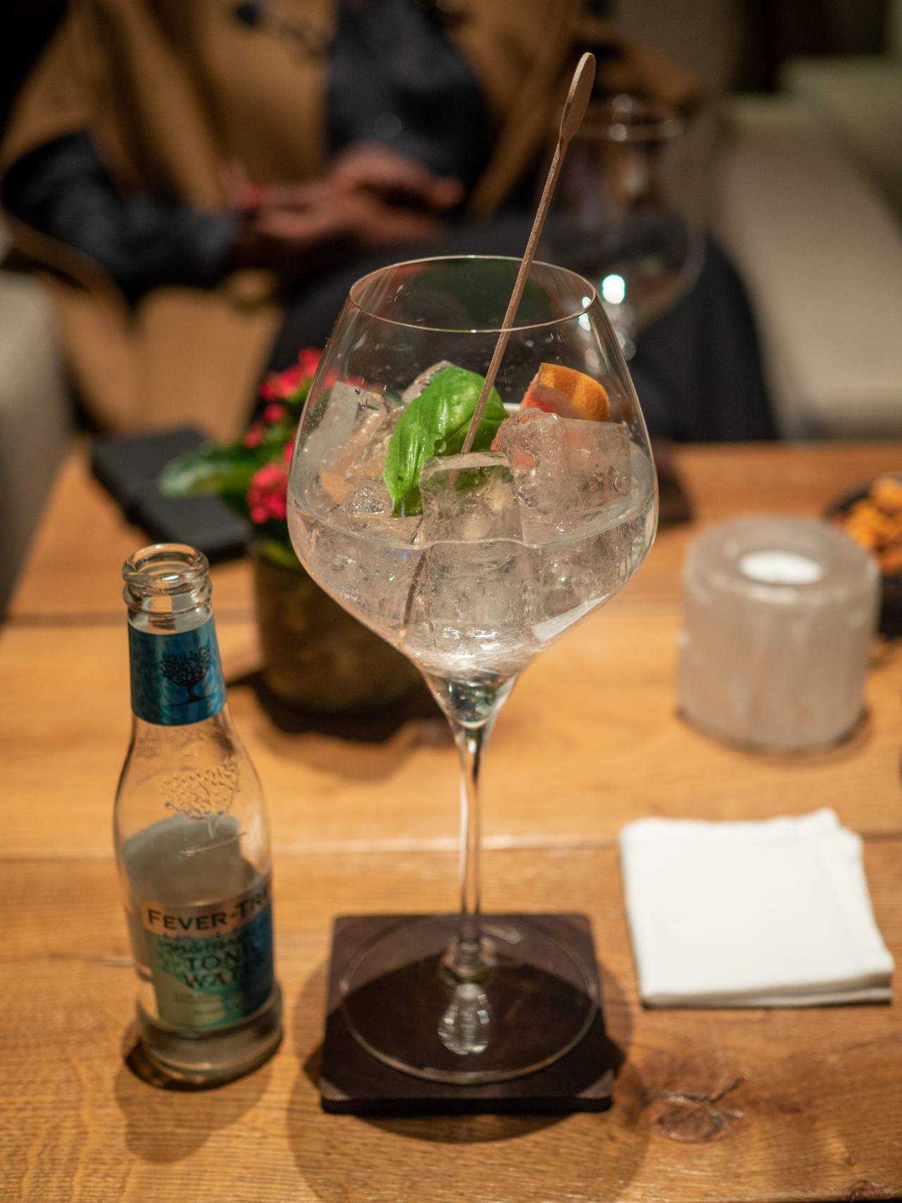 I would have my wrists slapped, however, if I failed to mention the foodie scene here at The Alpina Gstaad. They have not one, but two Michelin starred restaurants sitting back to back on the ground floor, one offering what I like to think of as posh comfort foods and the other featuring what you’d never expect to find in Gstaad – a sushi restaurant! Having two restaurants with Michelin stars, for any hotel, is quite the achievement and one that is talked about extensively by guests. While the Michelin stars are of course quite the accolade, all four restaurants at The Alpina Gstaad are worth a visit. My personal favourite, Swiss Stubli, is perhaps the most typical for Swiss cuisine. Offering traditional Alpine cuisine, the fondue here will convert even the toughest cheese critic. The Raclette will also haunt you for the rest of your days. It’s melted cheese heaven on a plate, that doesn’t stop coming until you beg for mercy! I feared I’d have to be rolled out of every restaurant, starting with the breakfast buffet and running straight through until after dinner Alpina Gin & Tonics by the fire.